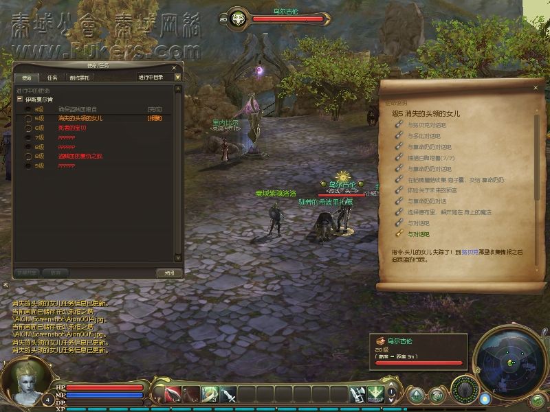 随便做几个任务就到了2级 可以开始使命任务了.如图所示 这就是任务查询系统 不知道怪在哪里就去点下.然后打开地图M会有红点显示 界面右下角雷达上也有红色的点. 注意 不在同一地图的地点是查询不到的.