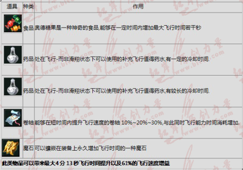 飞行药物恢复,食品增益,提升卷轴以及飞行魔石