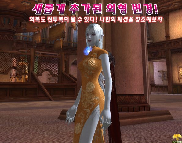 让你与别人不一样,更美丽地衬托玩家的新外形变更系统。可以将忘记了的韩服及圣诞服,还有追加中国传统服饰旗袍都可以用来当外形变更的道具。