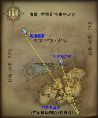 本地区的三个飞行传送点分别是:定居者营、贝达扎尔村、蹦蹦部落