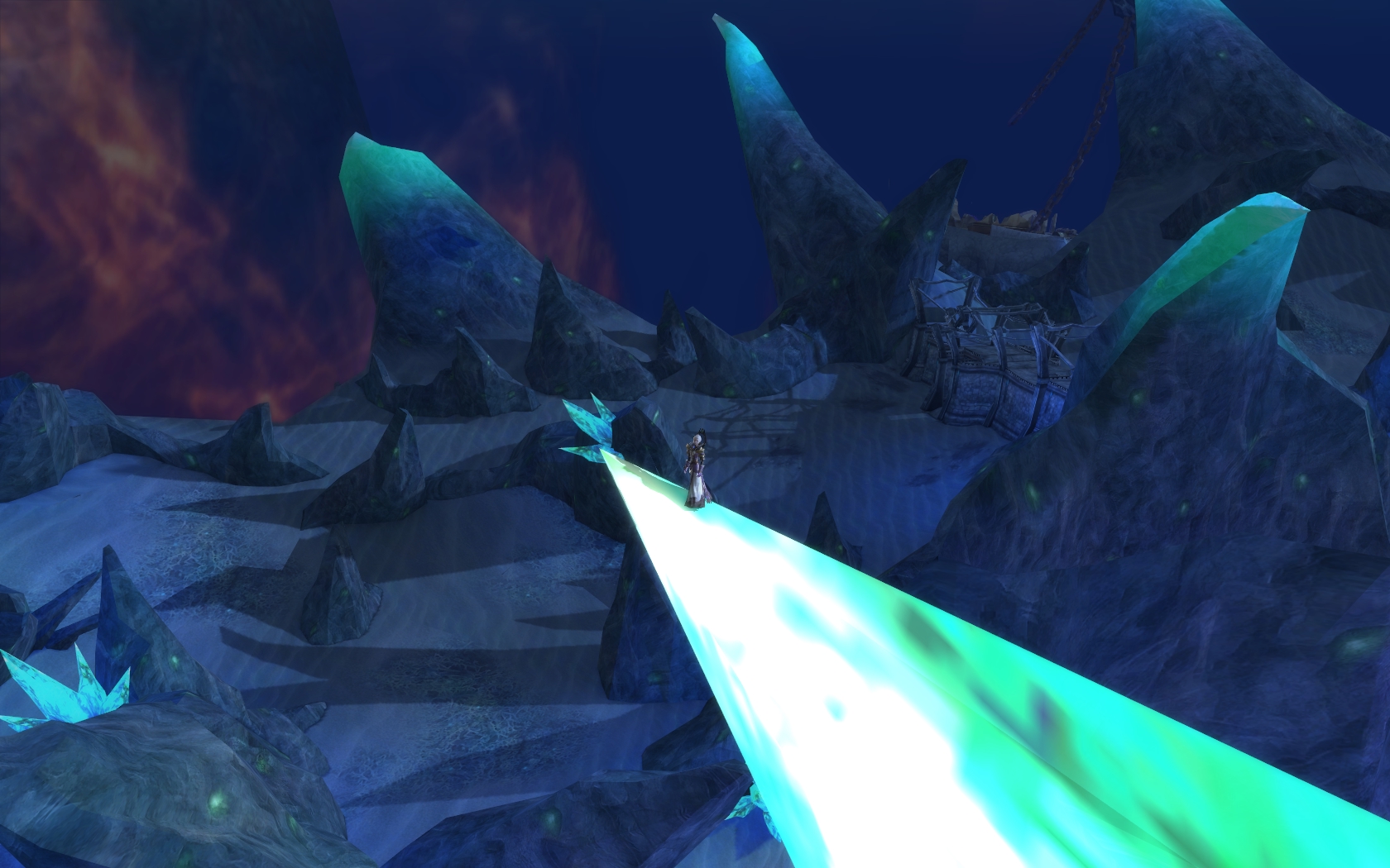这里应该是许多玩家比较熟悉的地图。位于欧比斯下层的埃希尔东西要塞之间,几乎所有进过欧比斯的玩家都曾来过这里。在这里有着许多蓝色水晶状的岩石,其中一些十分巨大,岩石的尖角高高耸立,可以站人,是很好的伏击地点。唯一的缺点是附近掩体比较少。在这里设伏,自己也要小心。