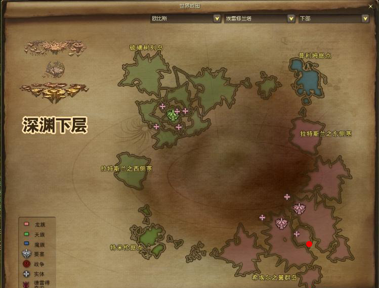 依然是位于欧比斯下层的一处地形,硫磺树列岛的东侧,附近又有实体又有要塞,经常有玩家在这里和龙族打的不亦乐乎,魔族玩家在此还有任务,所以在此设伏,也很容易捕捉到猎物。