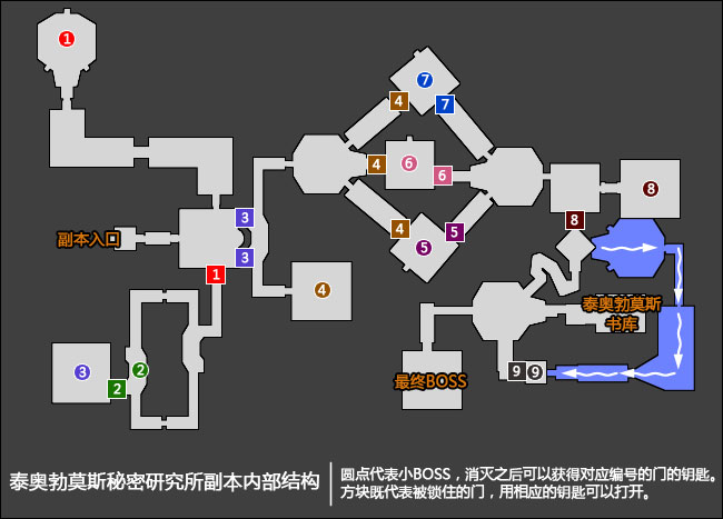 泰奥勃莫斯秘密研究所位于泰奥勃莫斯深处,需要玩家等级45级以上,并且完成泰奥勃莫斯的秘密研究入场任务之后方可以进入。正常攻略时间大约为五到六小时左右,由于目前尚处于开荒期,队伍的配置应以稳妥的双治疗为主,当然,如果治疗职业够强大的话,单治疗也未尝不可。之后,除却MT的守护星之外,其它职业应以DPS为主,魔道星是首选,弓星和杀星也是不错的选择,如果担心一个MT不够的话,也可以安排一名剑星以备不测。