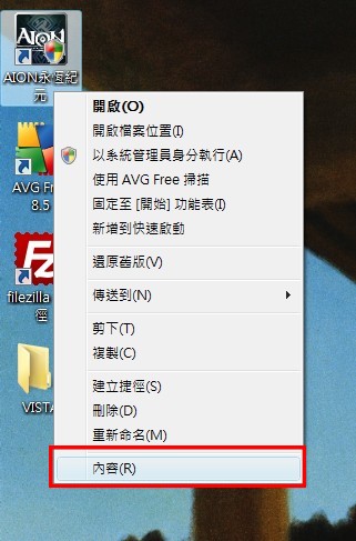 桌面上的『AION永恒纪元』图标,按下『鼠标右键』。