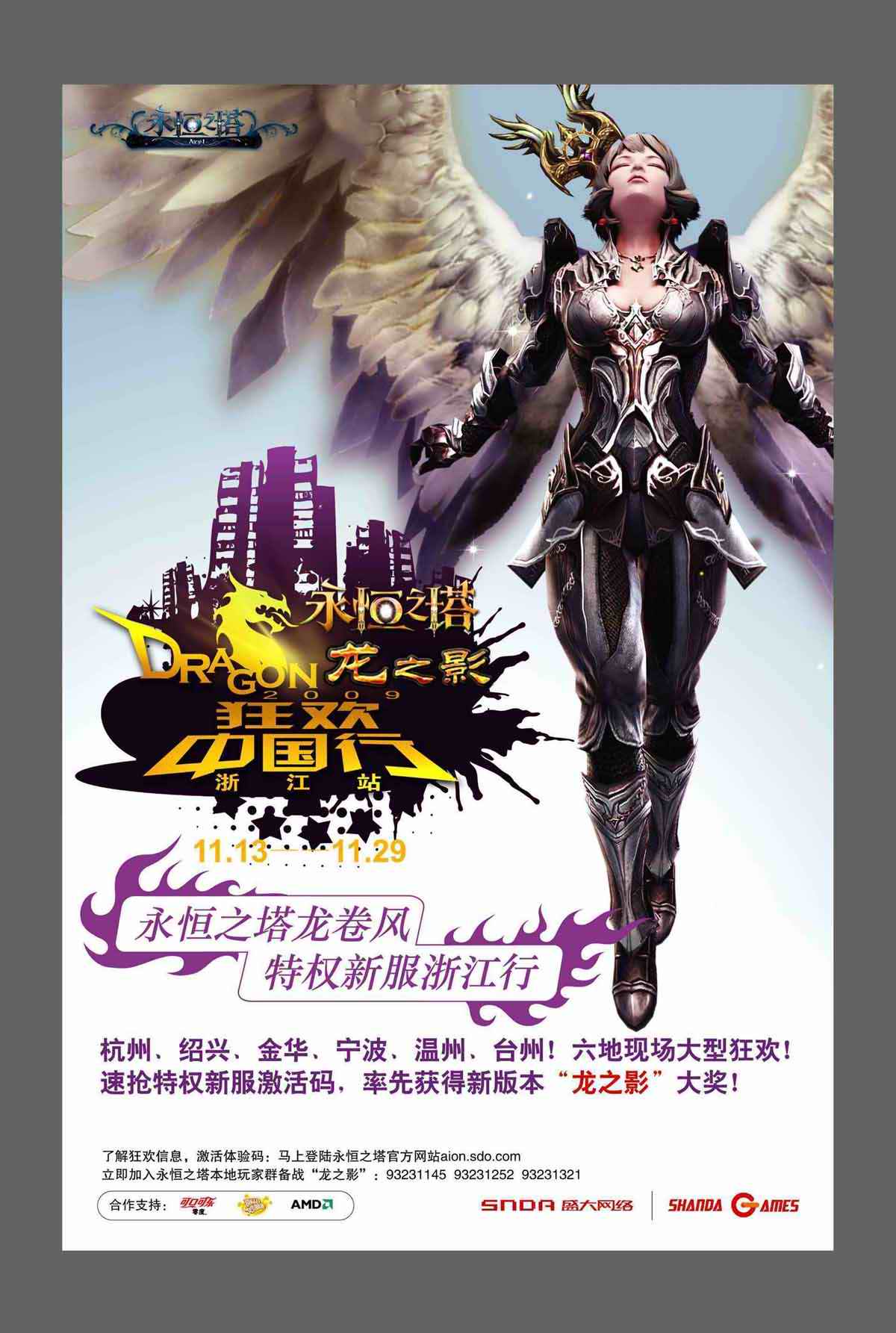 2009年11月,为迎接即将到来的《永恒之塔》新版,盛大游戏将开启09年最大规模的玩家狂欢节——《永恒之塔》“Dragon狂欢中国行”,首站杭州站将在11月13日拉开序幕,届时整个浙江将成为玩家狂欢的乐园,《永恒之塔》也将在欢乐的气氛中迎来新版本——“龙之影”的开启。