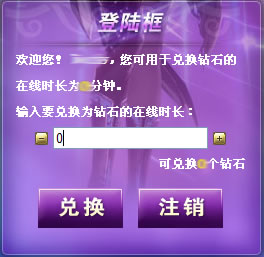 第二步:登录后,系统将提示玩家已经累计的在线时长为多少分钟,玩家选择输入用于本次兑换的时长,注意,每600分钟兑换一钻石。