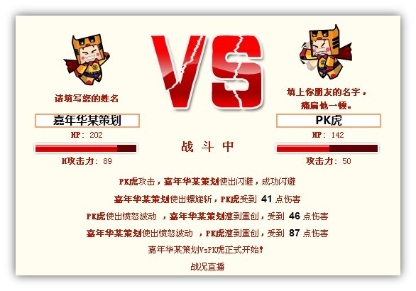 输入姓名,不仅可以与PK虎搏斗,还能和你的朋友在页面上龙争虎斗一番~