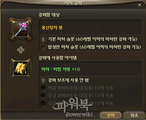 - 合成后的双手武器进行魔石强化时,将出现一个可选择基本魔石孔槽/合成后的魔石孔槽进行强化的选择窗口。 |
