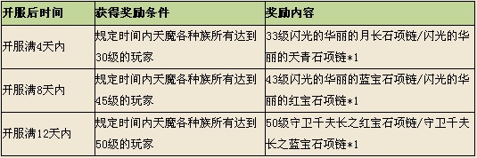 活动内容:自服务器开启后,凡在规定的时间内达到相应的等级,即可获得相应的奖励。