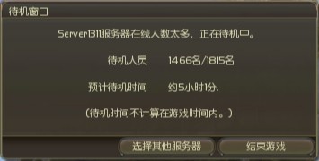 3、11:15分重新进入游戏,显示“服务器在线人数太多,正在待机中”,排队约5小时1分,1535人在等待……