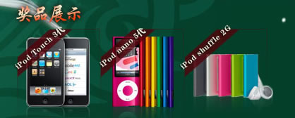 恭喜以上两位用户,我们已经准备了大量iPod数码奖品,参与MSN签名的玩家每周都拥有一次抽奖机会,说不定下一个大奖就属于你,快来参与吧。