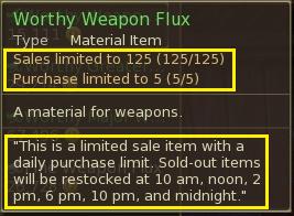 - 可购买的数量已经到达上限时,必须等一段时间后才可继续购买,等待时间会依照各物品而不同。