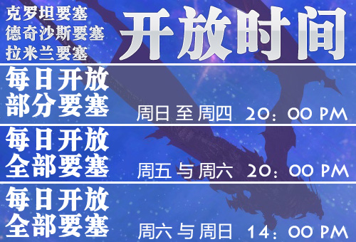 【 新版“黑色暴风“相关要塞开放时间 】