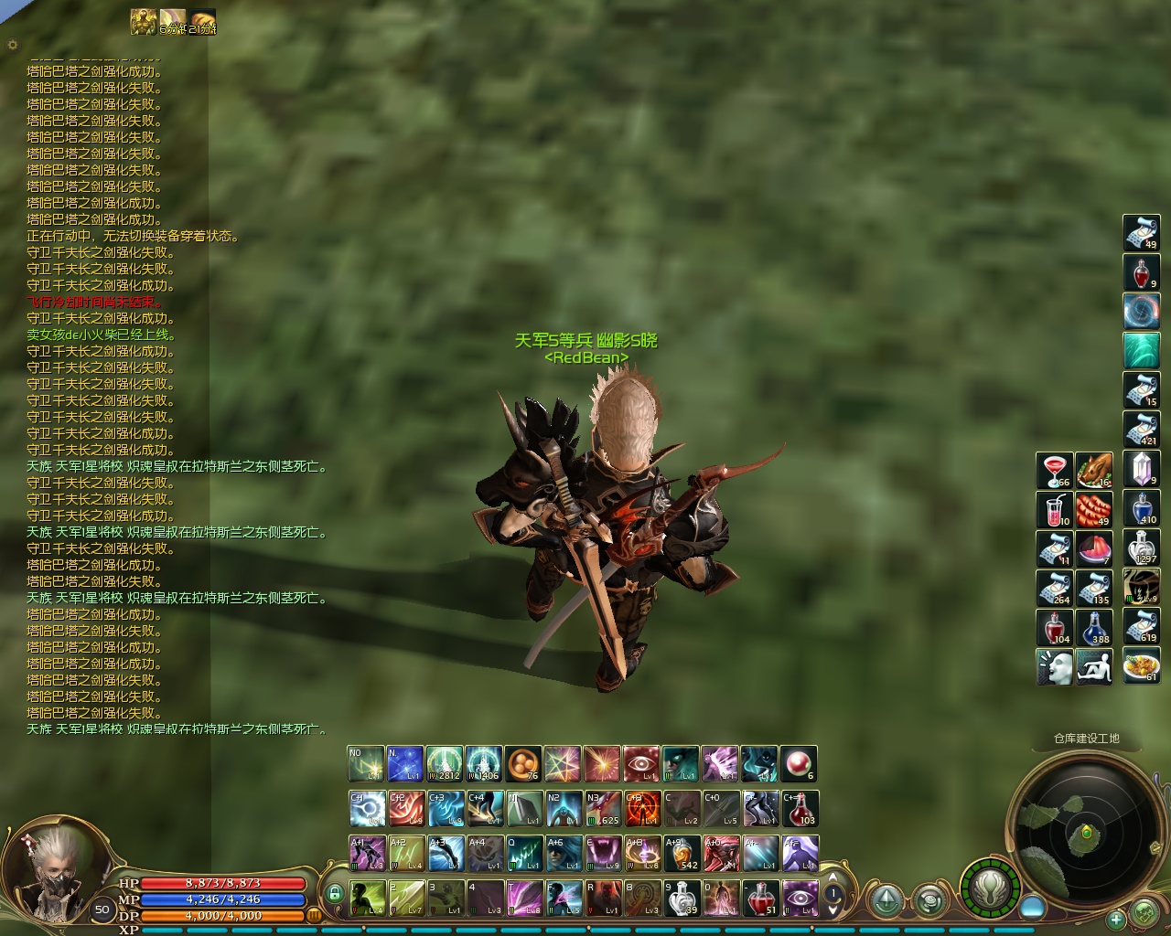 我强化,也并没像别人说的,垫石头啊·打怪啊·等等,就是一个劲的砸,中途偶尔用用辅助剂,主要是看读条,成功的读条和失败的读条,在我看来,是有点点区别的(这点只能意会,不能言传,自己去体会吧)