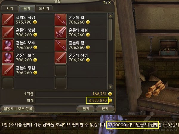 上图就是系统讯息告知玩家您的额度只有 570 万,可是想卖给 NPC 622 万多的东西,超过额度不给卖...