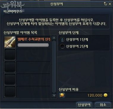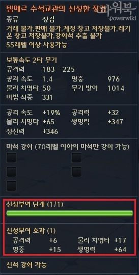 在改版后,许多特定物品可以附加「神圣赋予」的属性