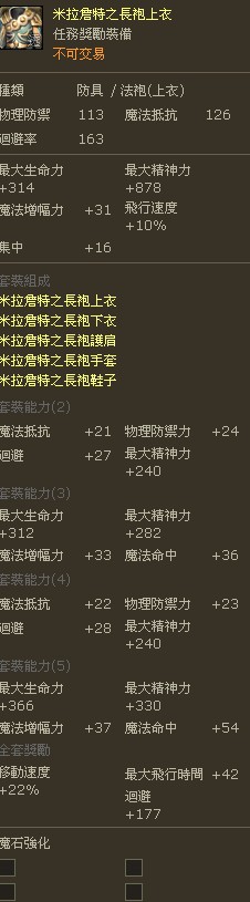 只有套装属性,毕竟没全套看不到全套时候属性,没单件的,单件去游戏里看,透视镜截来的,错没错没看,上班打盹无聊了,附上精千,德巴2套属性