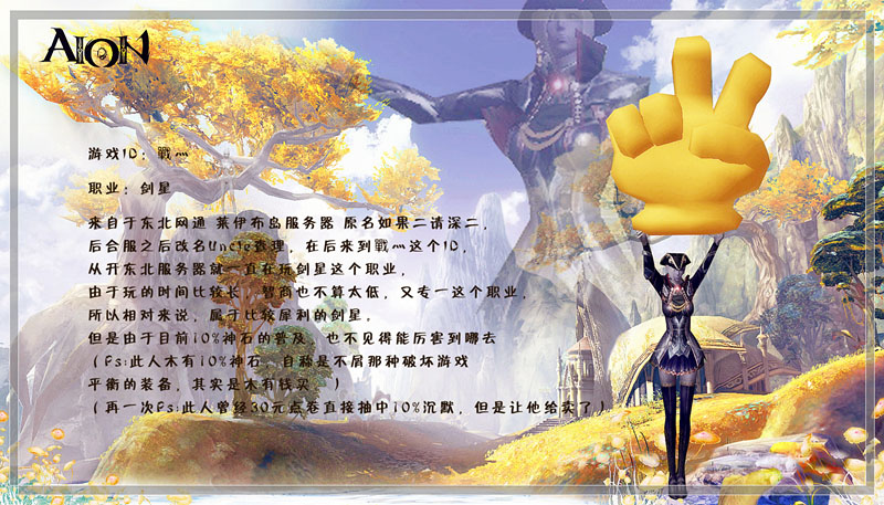 永恒本来是一款很好的游戏,盛大代理的也很好,可惜游戏里有部分没素质的玩家,游戏的世界频道本来是给大家组队、交易、相互沟通的,结果却变成了各种肮脏口水横飞的场所,真心希望永恒之塔的广大玩家不要把上世界频道骂人当成家常便饭! 更多访谈详情>>