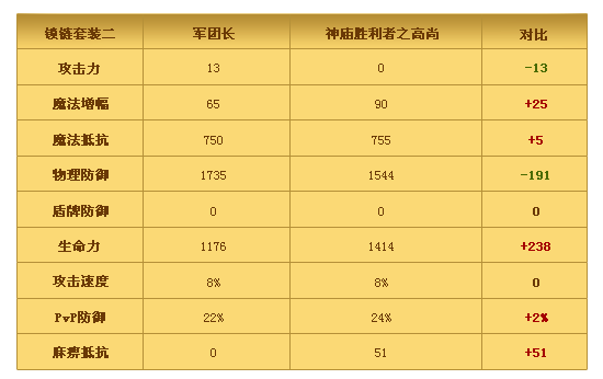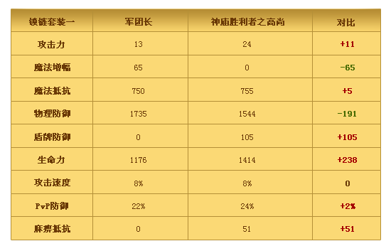“神庙胜利者之高尚”系列武器与防具是《永恒之塔:神之竞技场》的最强PvP装备之一,您可以通过全新副本“第3神庙训练所”中获得的“神庙徽章”与“勇气之神庙徽章”兑换。 在独特的“第2阶段神圣力注入效果”加成下,它的威力甚至隐约凌驾于曾经的PvP装备王者“军团长”系列,他们究竟孰强孰弱,我们将通过一系列对比测评为各位守护者展示。本期是锁链篇: 备注:1、上表“神庙胜利者之高尚”系列武器与防具的属性均为“第2阶段神圣力”注入后的效果。 2、上表属性为头部、胸部、肩膀、手套、腿部、脚部的总属性。 3、以上数据均来自于《永恒之塔:神之竞技场》测试版本,实际数据请以游戏内为准。第三神庙训练所:史上首次的PvP副本,孤独与混沌的战斗,竞技场里没有朋友!帕德玛夏的洞穴:徘徊在龙界的敏锐巨龙化身副本首领,齐聚48名守护者的史诗级挑战!顶尖装备:首度登场的高尚系列武器与防具、全新的帕德玛夏与代行者英雄级装备!神圣力注入:第二阶段注入解封,强化之路没有尽头!龙界要塞战:更丰厚的白金功勋勋章奖励,更新颖的赫拉纳斯和泰格拉克战斗方式!以及更多、更多精彩变化…… 今年11月,决战神之竞技场!