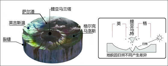 提亚马特龙界大致分为四处,分别是英吉斯温、格尔克马洛斯、提亚玛兰塔和萨尔潘。以提亚马特城堡所在的提亚玛兰塔为中心,西部是英吉斯温,北部是萨尔潘,东部是格尔克马洛斯。萨尔潘由于常年种植德拉纳,大地的生命几近干涸。现在大部分地区由鸢族占领。