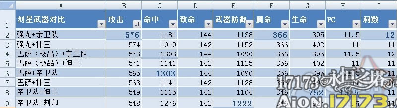 对于剑星现在的武器选择大家都基本有一个目标了。我整理了一下主要武器的合成之后属性对比,这里只考虑枪,大部分剑星是不用大剑的。