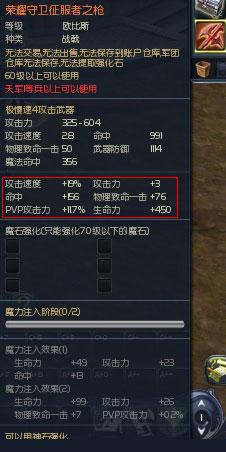 【荣耀守卫征服者之枪】原始属性