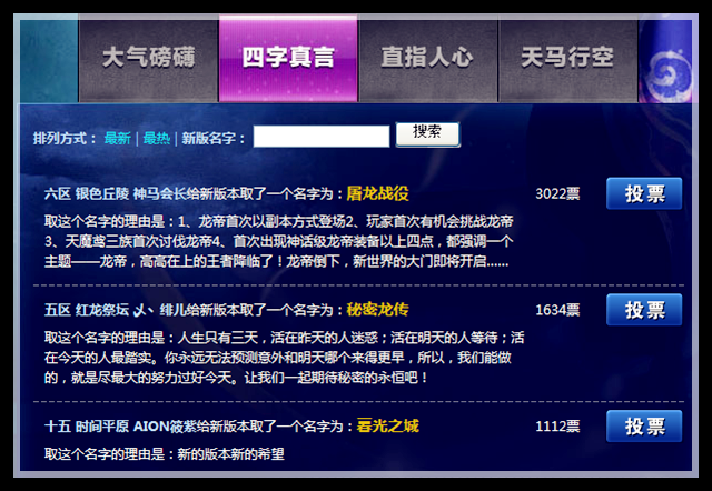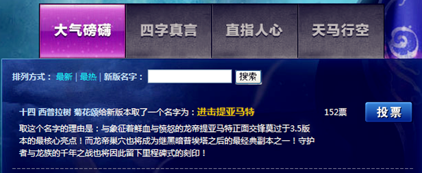 “3.5版本名征集—当创意变成经典”活动现已圆满结束,近上万条的创意,让我们充分感受到了大家对3.5版本的热爱与期待。昨日(8月12日)第2届黄金争霸总决赛北京现场,3.5版本正式发布,定名为“进击提亚马特”。全新龙帝副本,创新2v2v2竞技场,引爆天魔拉锯战的次元漩涡等精彩尽在金秋九月的3.5版本!