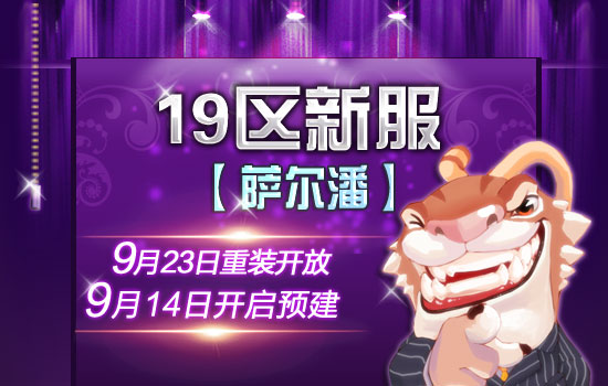 为了迎接3.5新版的到来,19区新服【萨尔潘】将于9月23日14时重装开启,9月14日14时正式对外开放角色预创建。