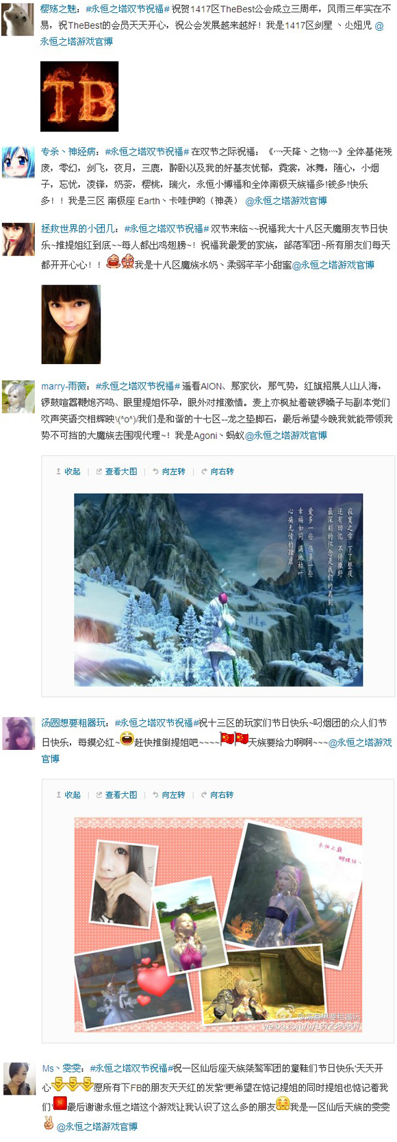 入围玩家的微博祝福语截图