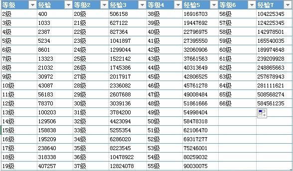 国服4.0版本更新 1至65级升级所需经验