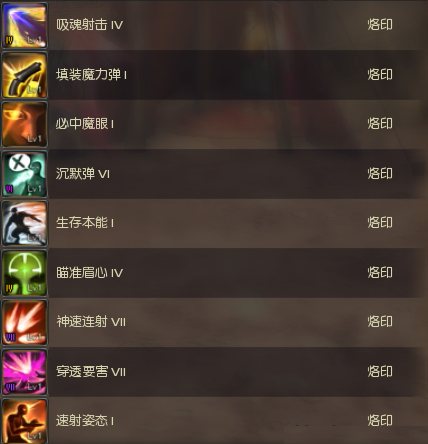 枪系烙印,可以说基本没有混搭的可能,除非抛弃上述4个必带烙印,或者放弃瞄准眉心。但是我想不出有什么理由放弃瞄准眉心。