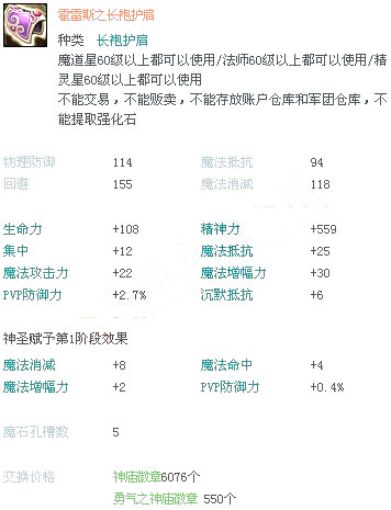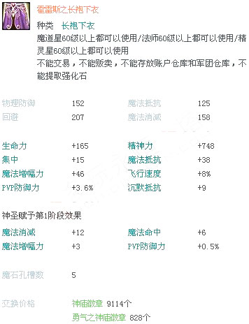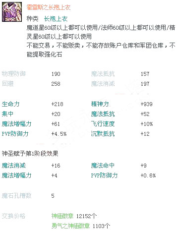 Aion3.0斗技场新增60级霍雷斯防具属性