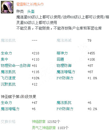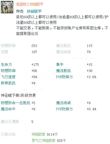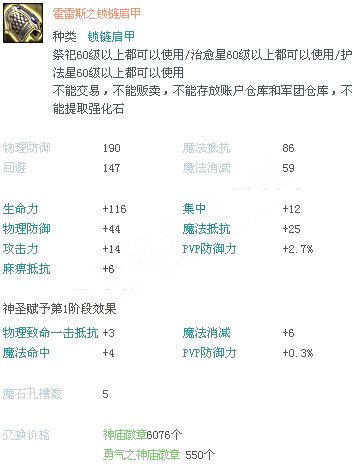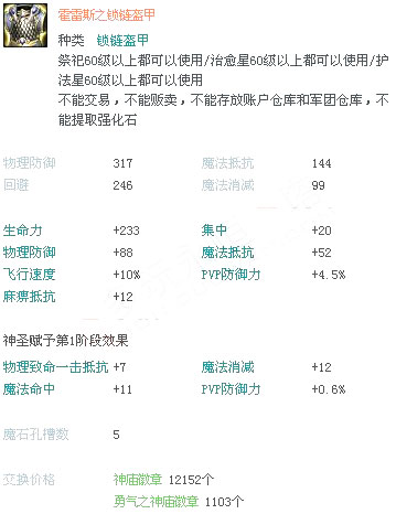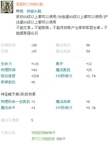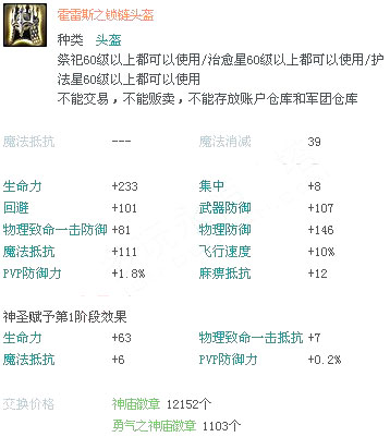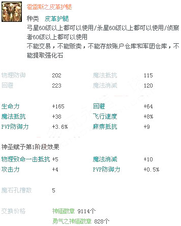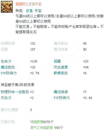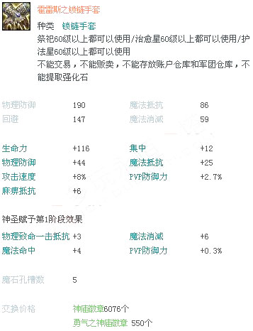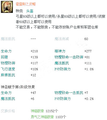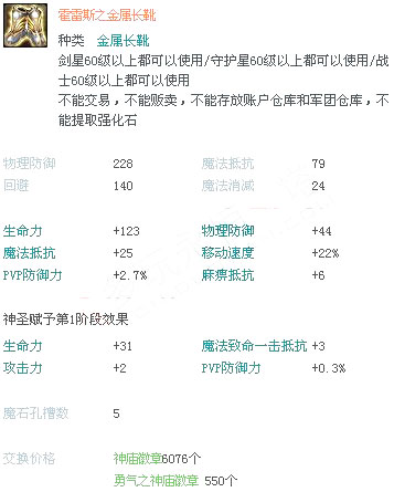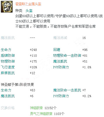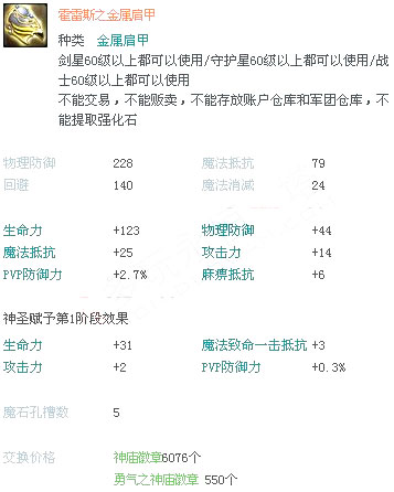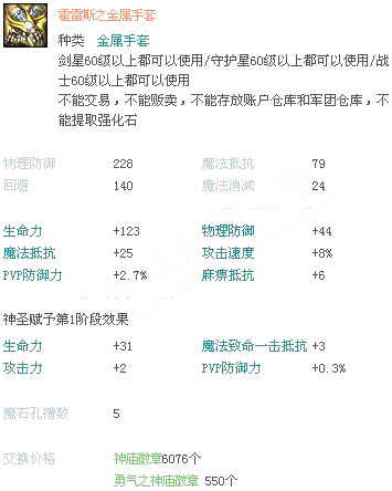 Aion3.0斗技场新增60级霍雷斯防具属性