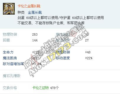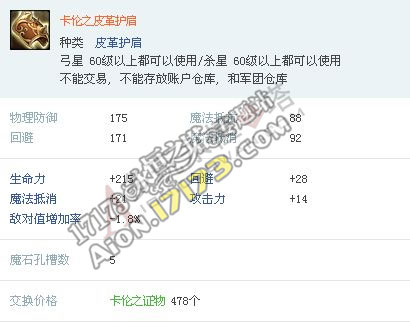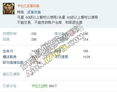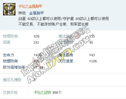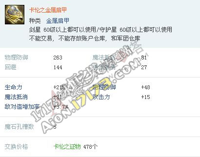 永恒之塔3.0版英雄级卡伦防具属性详解
