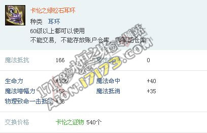 > 游戏基本资料 > 永恒之塔3.0版英雄级卡伦饰品属性详解