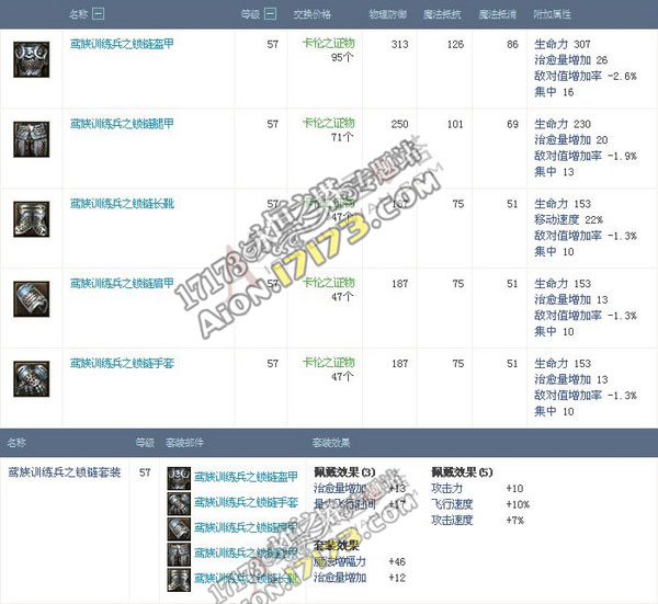 Aion3.0版传承级鸢族训练兵装备属性详解