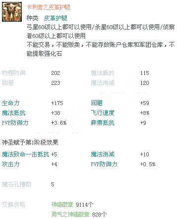 Aion3.0斗技场新增60级卡利浦防具属性