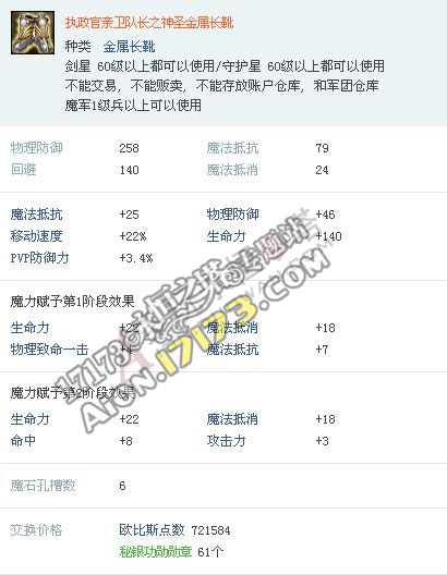 Aion3.0韩服 精锐守卫亲卫队套装属性