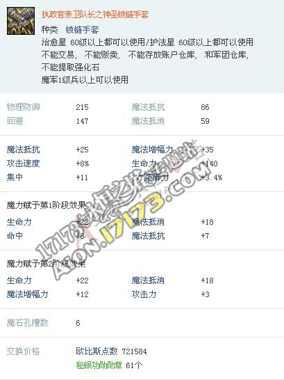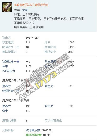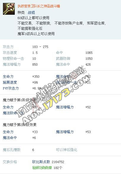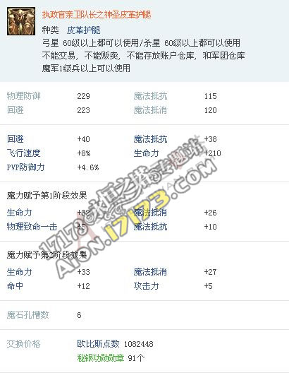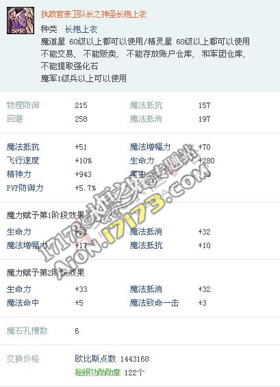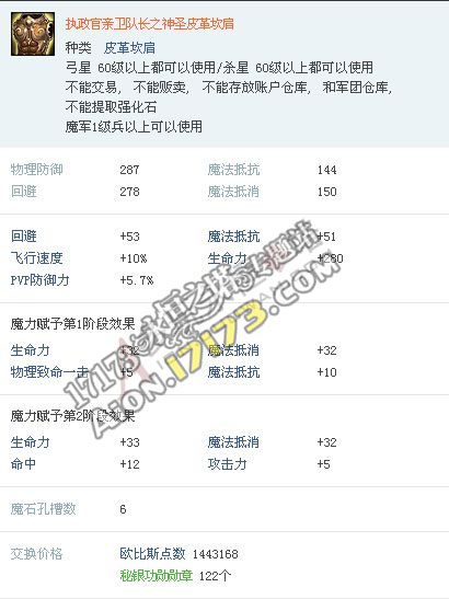 Aion3.0韩服 精锐守卫亲卫队套装属性