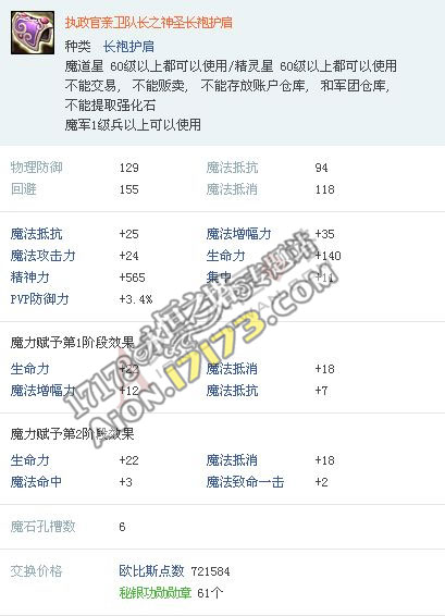 > 游戏基本资料 > Aion3.0版执政官亲卫队长神圣套装详解