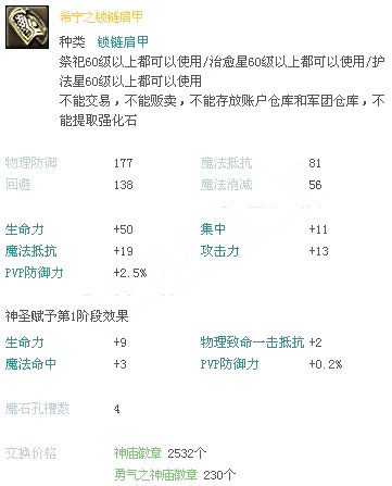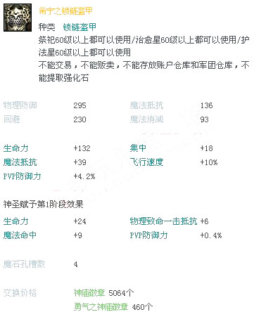> 游戏基本资料 > Aion3.0斗技场新增加60级希宁防具属性